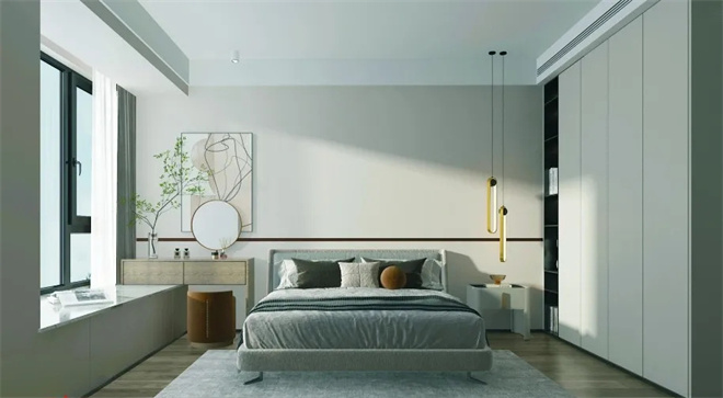空間設(shè)計(jì)得十分簡(jiǎn)潔,通過線條、幾何的形式,突出空間的規(guī)整和利落,讓原本布局合理的空間更為大氣