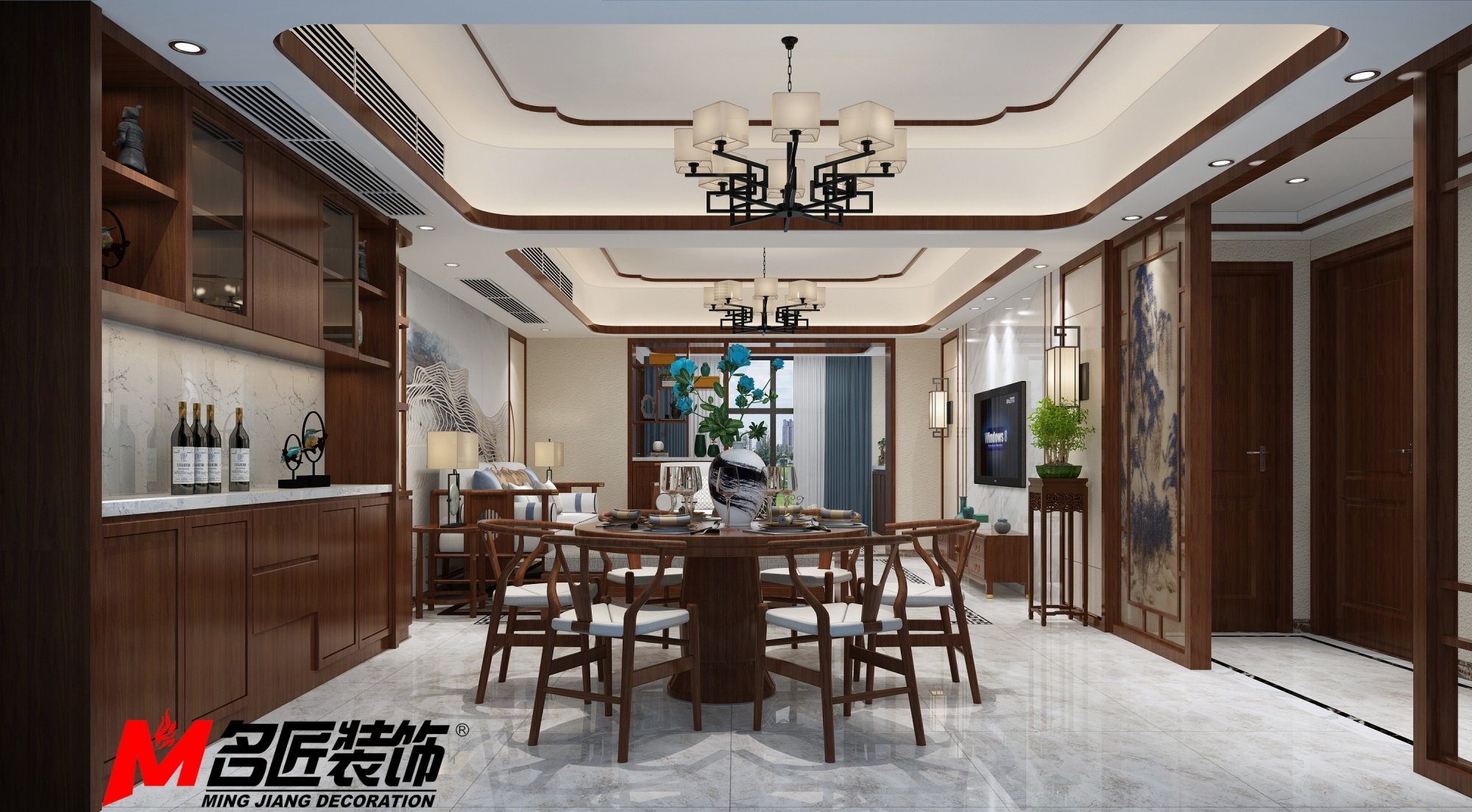 惠州101-200平米新中式風(fēng)格榮泰河庭家裝設(shè)計案例