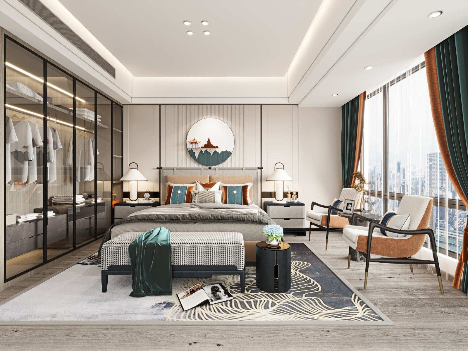 汕頭御海天禧四居新中式風(fēng)格裝修效果圖