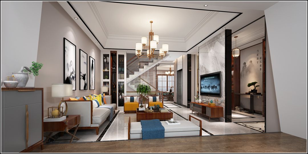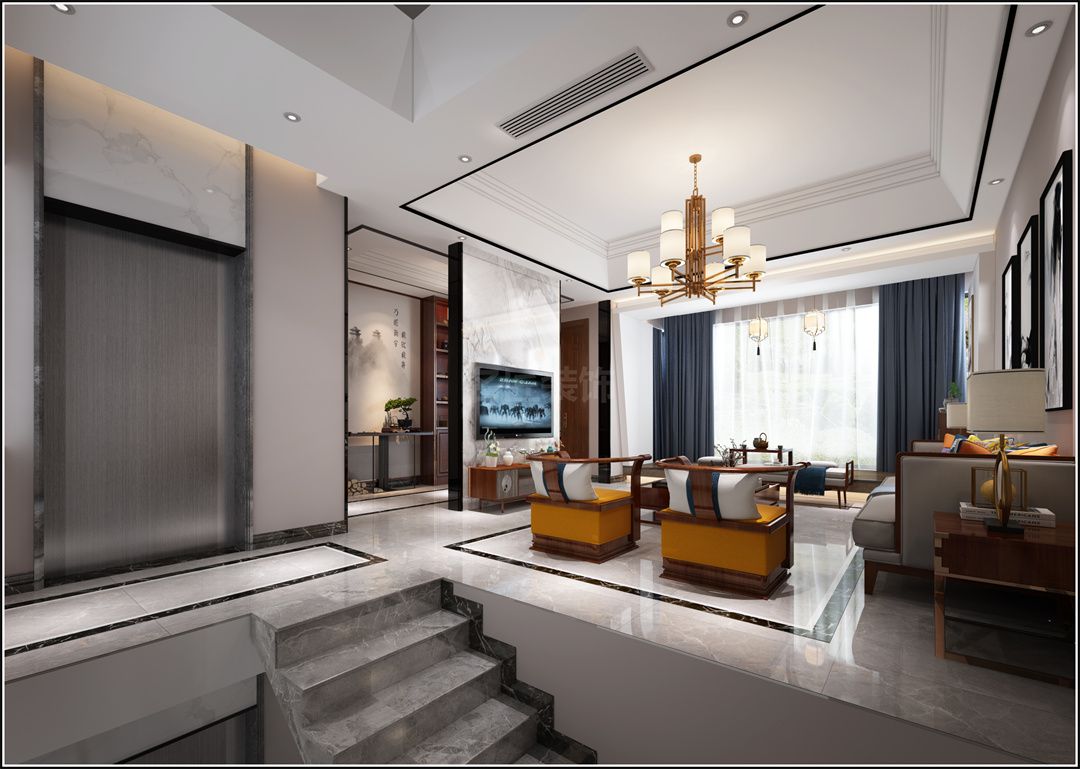 中山保利林語麓山別墅新中式風(fēng)格裝修效果圖