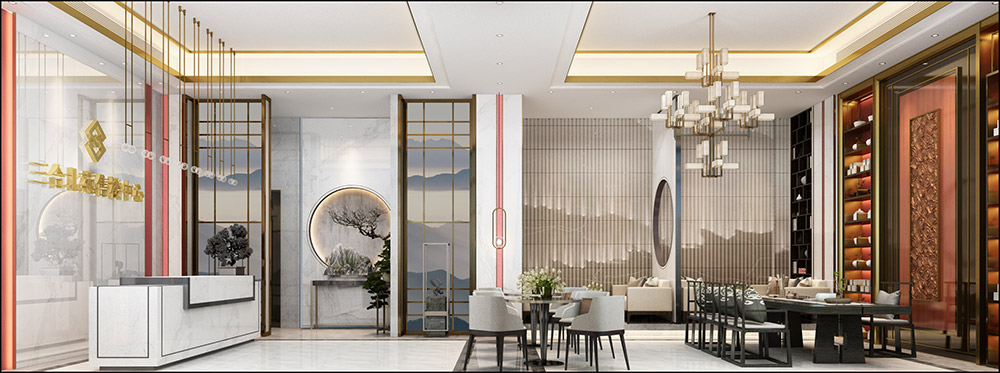 普洱三合北苑辦公空間新中式風(fēng)格裝修效果圖