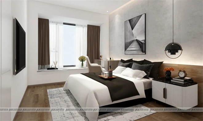 步入臥室,以木質(zhì)背景墻做滿(mǎn)床頭,搭配前衛(wèi)的裝飾畫(huà),北歐風(fēng)灰色調(diào)墻布,立體吊燈點(diǎn)綴,整體自然協(xié)調(diào)。清晨的陽(yáng)光從窗戶(hù)透進(jìn)來(lái),灑在了潔白的被子上,這片刻的溫柔令人沉醉。