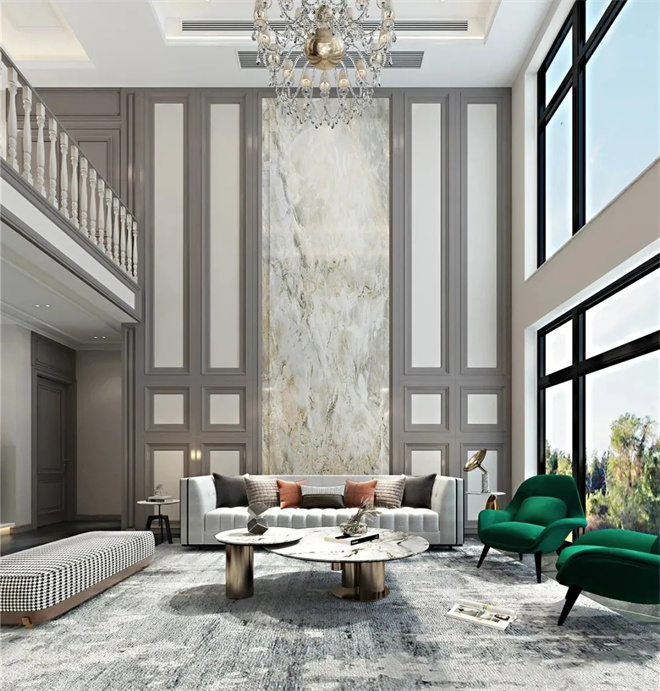 挑空開放式客廳,將空間視覺感與整體品質(zhì),提升到最佳狀態(tài),賦予一種極致靈動(dòng)的空間感。創(chuàng)造出一種更具浪漫動(dòng)感而又華麗纖細(xì)的裝飾格局。
