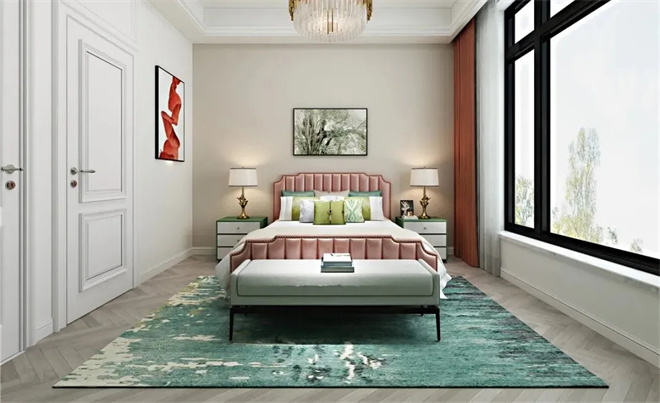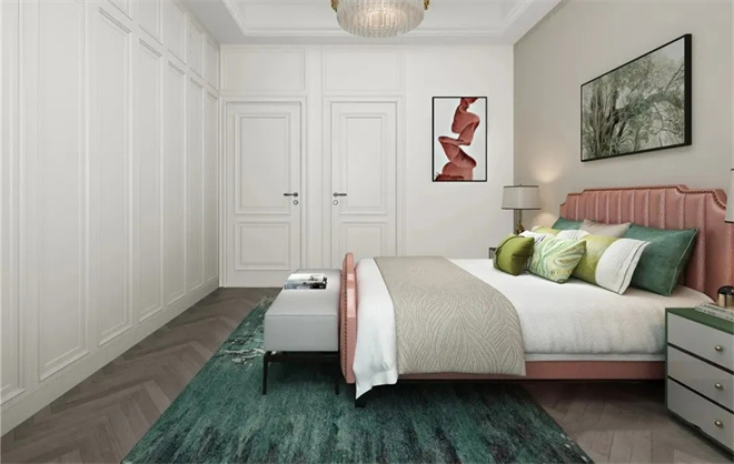 主臥設(shè)計(jì)融入當(dāng)代生活的節(jié)奏與韻律,色彩搭配交織出時(shí)尚獨(dú)特的生活姿態(tài),粉色的點(diǎn)綴,既低調(diào)又優(yōu)雅,勾勒功能與美學(xué)相諧的設(shè)計(jì)風(fēng)尚。