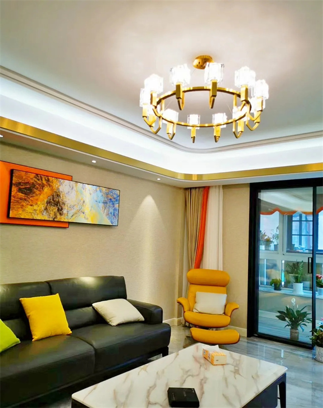 金色光澤在人們第一印象中就是一種富貴華麗的象征,圓形香檳金水晶吊燈,明亮的光照將金屬光澤帶來(lái)的輕奢質(zhì)感顯露的淋漓盡致