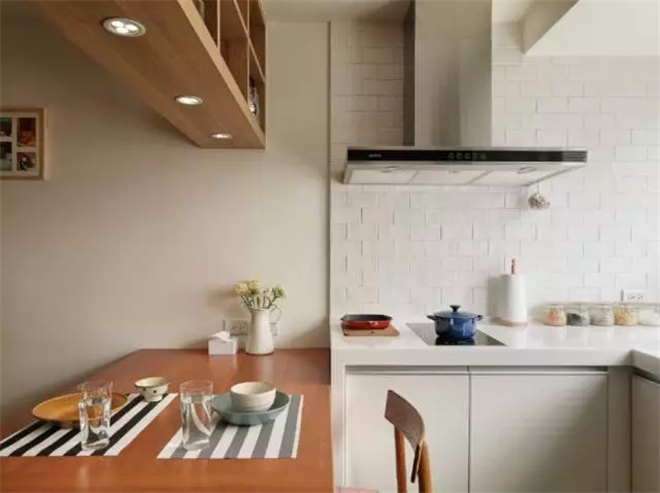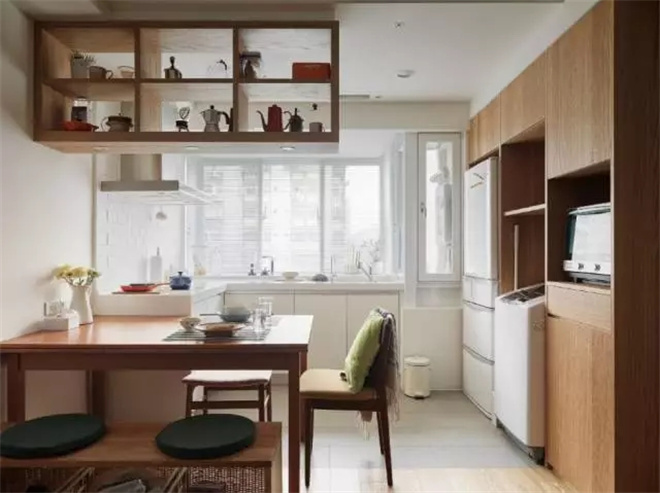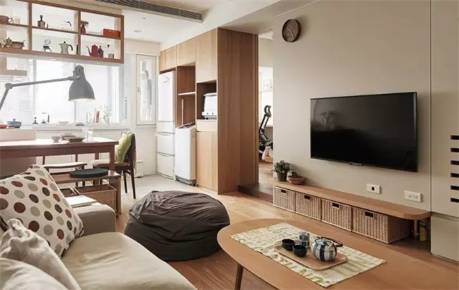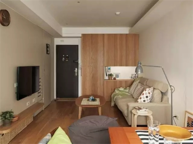 木質(zhì)的柜子更具有生活的氣息,旁邊就是通往臥室的門,推拉式的木門