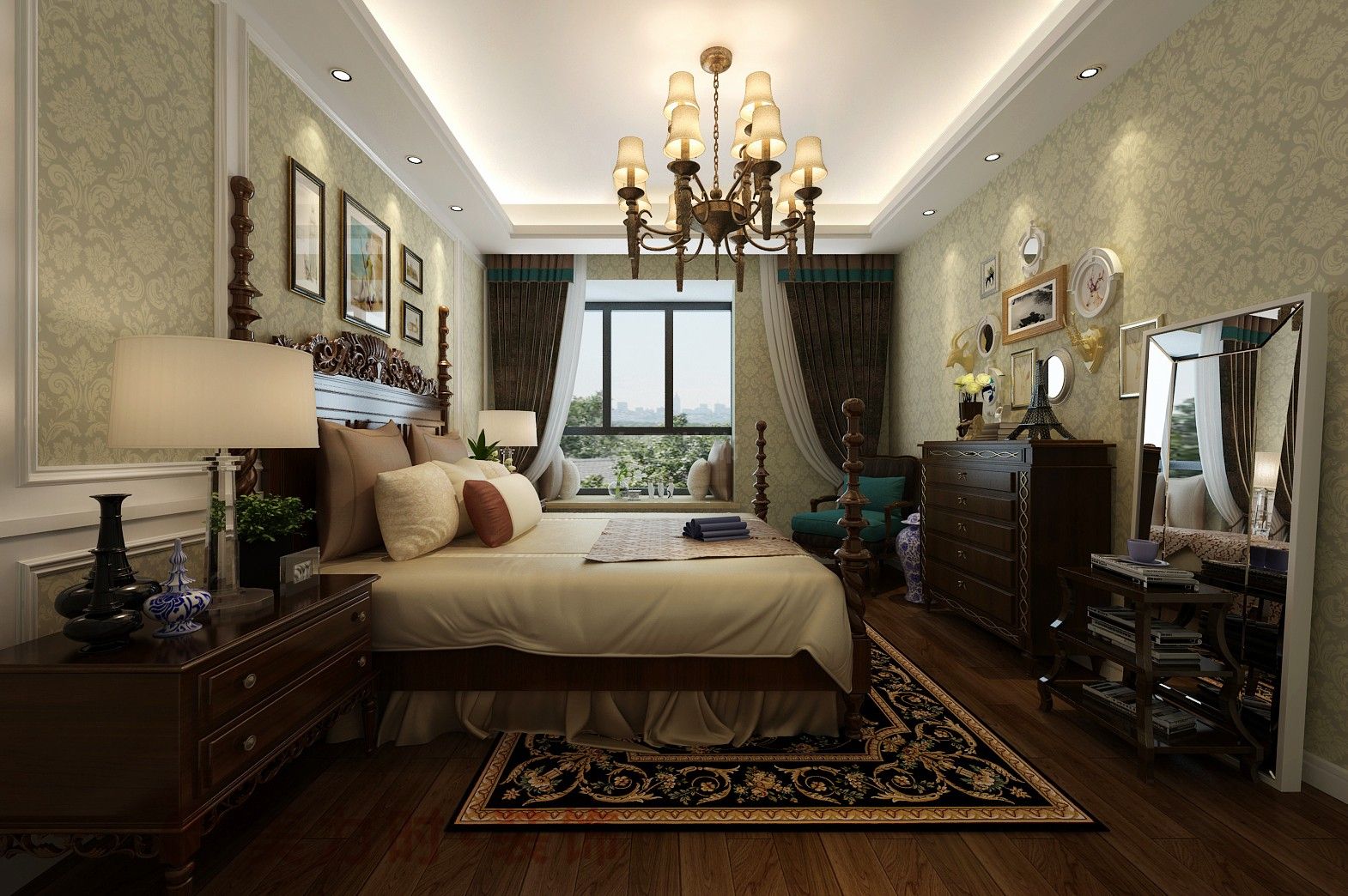 文山壯族苗族自治州101-200平米美式風格中天名郡家裝設計效果圖