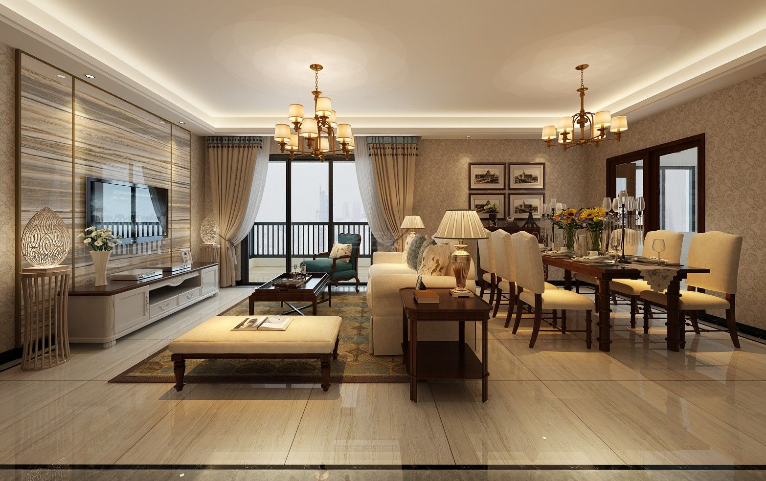 廣州101-200平米美式風格室內(nèi)設計效果圖