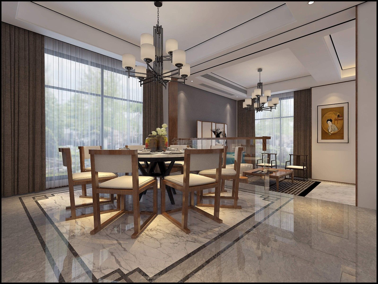 廣州101-200平米新中式風格裝修設(shè)計效果圖