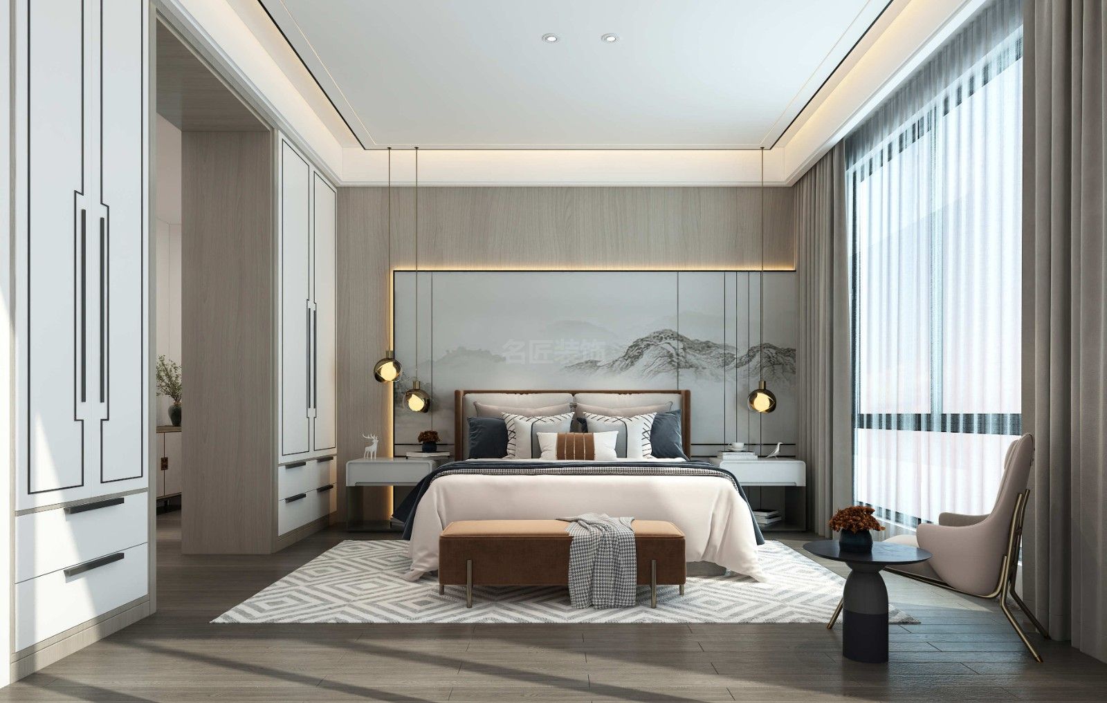 ??陂L怡花園別墅新中式風格裝修效果圖