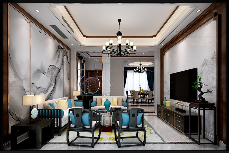 惠州201-300平米新中式風(fēng)格景安花園家裝設(shè)計(jì)效果圖