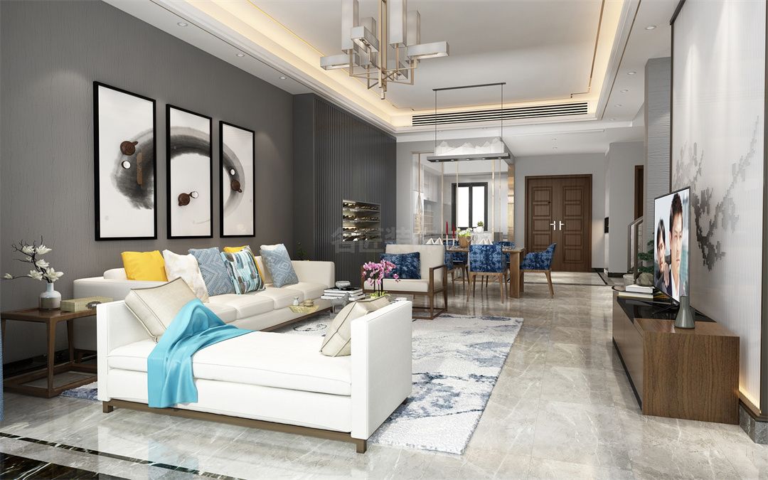 中山錦繡海灣城別墅新中式風(fēng)格裝修效果圖