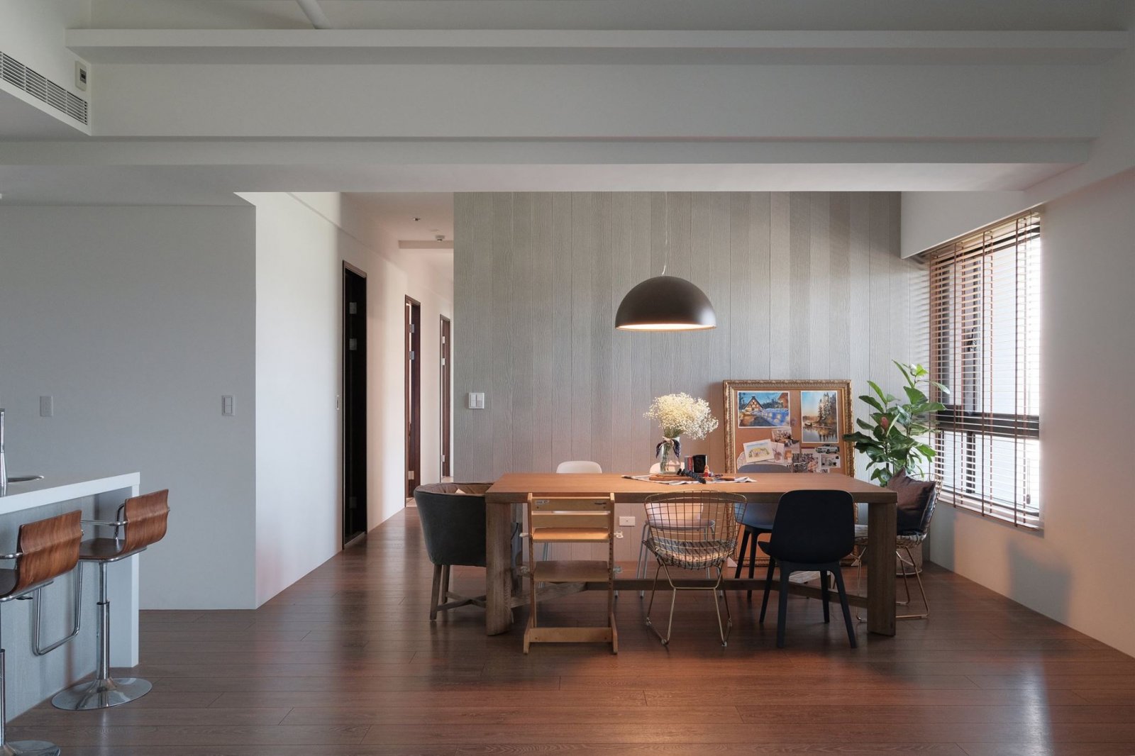 室內(nèi)餐廳裝修效果圖,內(nèi)嵌式餐廳柜,收納日常使用的餐廳物品,錯(cuò)落有致的格子,更是一種簡(jiǎn)約的美。